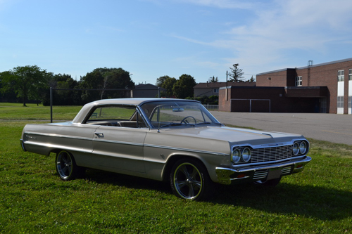 Nice clean original Missouri car with only 56,238 miles and only 3 owners from same family since new. Professionally restored RESTOMOD with modern drivetrain, suspension and wheels. Drive anywhere safe & reliable. Can be serviced at your local GM Dealer. The cowl trim tag decodes the production date as 04B (2nd w/o April 1964) and the assembly plant as St. Louis, MO. The paint code is 938 Desert Beige with an interior trim code of 866 Fawn5. This Impala boasts of having a modern drivetrain, specifically, an LS1 w/51k miles from 2001 Camaro SS with 4L60E AutomaticTransmission. It also features a new Be Cool aluminum rad with dual electric fans, stainless steel overflow bottle, new front end with upper control arms from Global West Suspension, Borgeson steering conversion box, Summit front disc brakes with new brake booster. The dash is a VHX-63 by Dakota Digital and there is a new gas tank with an electric fuel pump and new custom exhaust. The differential features a new Auburn Posi & Richmond Gear package and the whole thing rides on Ridler wheels (18×8 front & 18×9.5 rear) with new Goodyear Eagle RSA tires. An amazing Impala that looks fantastic with its classic styling and is ready to run. Valid Safety Certificate by GM Dealer.