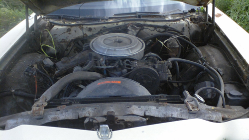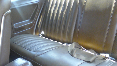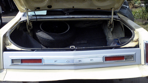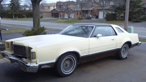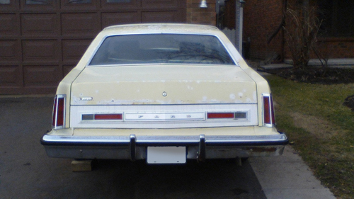 Two door Brougham coupe, all steel body. Leatherette bucket seats and console, turbine alloy wheels, power windows, brakes, and steering, air conditioning. Standard features include 351 Modified V8, automatic C4 transmission, disc and drum brakes.