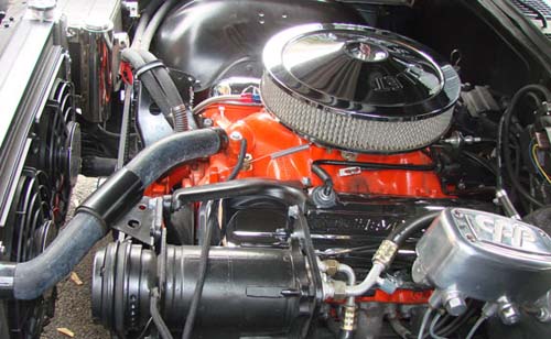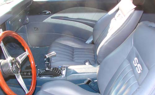 Mechanical restoration performed by Jason Roberts. Complete new wiring, update fuse panel, Hothkiss Edelbrock full suspension with 4 wheel power disc brakes, 13″ front, 12″ back (cross drilled rotors). Full custom blue leather & suede interior, billet handles and mirror