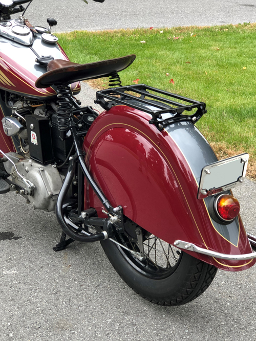 5 year professional restoration. Runs like new. Last year of hard tail, first year of skirts. Special Worlds Fair paint scheme. Extensive photos of restoration. Lower engine case has been replaced and stamped with frame #. Speed/odometer doesn’t work. Minor paint chips. Scuffing on back of fender.