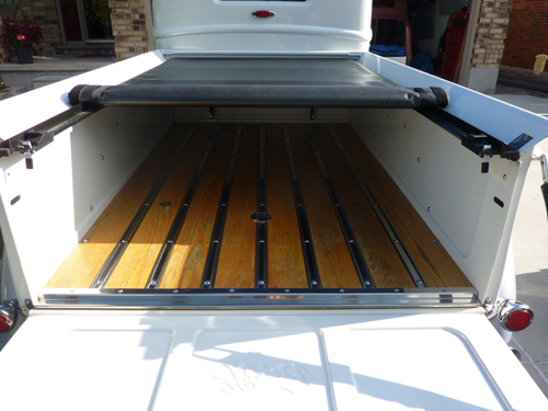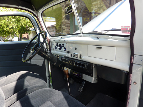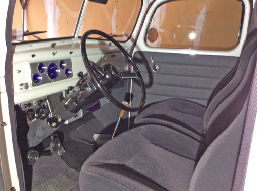 Off frame rebuild, new box and tailgate, fiberglass fenders, running boards. 1949 modified Ford flathead, .030 over, Mercury crank, Isky camshaft, Edelbrock heads, Speedway four barrel intake, 390 Holley, 93 Firebird 5 speed, under dash A/C, ps, pdl, pw, pb four wheel disc. Electric wipers with delay, Dakota digital dash, cruise control, compass, outside temperature reading, bucket seats tilt for under seat storage, fuel tank under box, filler located in box. Posies super slider springs, Truxedo bed cover, some paint chips due to normal wearing to driving.