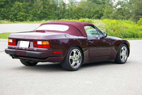 This highly desirable and rare S2 Model 944 Porsche is made even more so by its rare factory burgundy finish. Brand new top, working A/C converted to R134 and has extensive service records with over $20K in receipts. Odometer was changed at approximately 70,000 miles and so now indicates 53,000 miles. Actual total mileage 123,000. Factory owners manuals. One lucky bidder is sure to know the joys of Porsche ownership as this lot is to be offered at NO RESERVE!