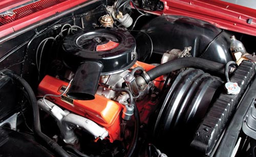 365 bhp, 327 cu. in. Turbo-Fire V8, four-speed manual transmission, independent front suspension with coil springs and concentric shock absorbers, four-link rear suspension with upper and lower control arms and coil springs, four wheel drum brakes.