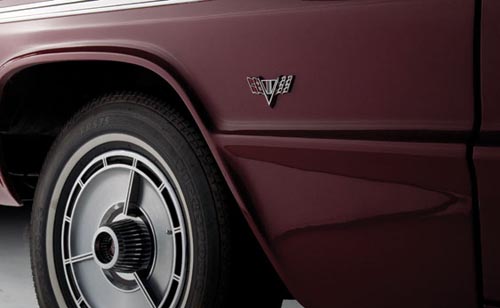 The SS or Super Sport was considered a separate series for the first time rather than an Impala option package. In SS trim, this was one handsome car including tri-bar wheel covers; engine-turned trim on the side moldings, rear cove molding, instrument panel and console; and discreet placement of SS badges on the exterior. Of a total of nearly 890,000 Impalas built for 1964, approximately 185,000 would wear the SS badge, and 81,897 convertibles would be part of the model mix.
