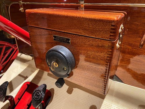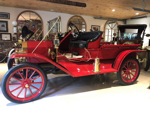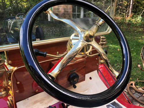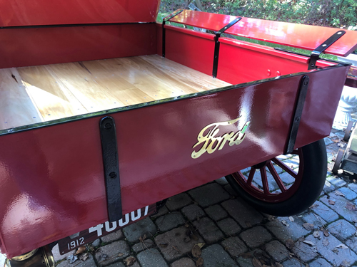 1910 Ford Model T Pickup serial # 20007 . Originally offered as a plain Ford chassis without body. Many “aftermarket “companies started to offer bodies for Ford. This particular example has Coach work by the John R Lipton & Son Company of New Bedford, Massachusetts . Originally sold in New England in 1910 it made its way to the Rochester, NY area . Its’ 4 cylinder 22 horsepower Model T Ford motor is coupled to its famous semi-automatic planetary transmission making its 2 speed operation smooth and quiet .Over many years in service it was used very sparingly. As was often the case it had its mechanical upgrades but always retained its original early style frame and coachwork. Its most recent restoration was completed in 2019 with new woodwork and fresh black leather diamond tufted upholstery on its original horsehair stuffed seat. New black smooth treaded tires are now mounted on its original round fellow wood wheels pinstriped in gold. New authentic 1910 fenders and sheet metal are fitted to suit and mechanically it is in excellent condition. The T is easy to operate and fun to drive. Brass headlamps and windshield contrast its original Carmine red colour and black tires. The earliest of Ford’s light commercial offerings and grandfather of the Ford F-150 .