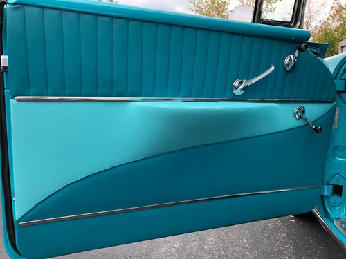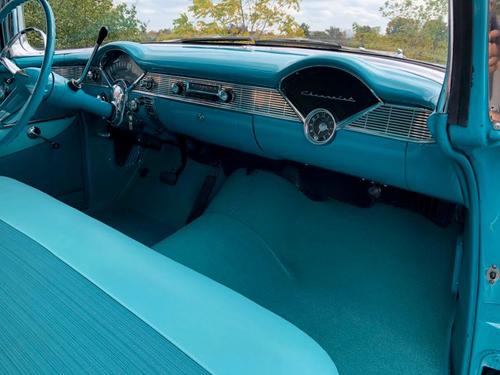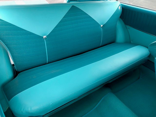 The interior has been fully and correctly restored back to original replacing all compotes and material with new back to correct and original materials colour and designs. Finished in correct Turquoise colours including all seats, door panels, correct carpets, rear cargo, headliner and Chevrolet embossed mats. Interior chrome and stainless shows excellent and was updated where necessary. The interior itself is a show stoppper. The factory AM radio and dash clock are currently non operable.