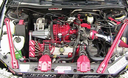 Pace Setter Ceramic Coated Headers, Accel #40 Injectors, Gapped Piston Rings, 170 Thermostat, 2 stage Colder Irradium Spark Plugs, Cold Air Intake with a K&N Air Cone Filter, Ported Blower, 3 Inch Pulley, Taylor 8 mm Wires, MSD Ignition Coils, 5 Angle Valve Job and Ported Heads, 2 1/2 Inch Mandrel Bends from the motor back, Magnaflow Muffler High Flow, 512 Lift on the Cam, 105 Pound Valve Springs, ARP Head Studs, 12.5 Pounds of Boost, Mobil 1 Synthetic Oil, 9,000 KM on the motor, New Air Conditioning Compressor, New Air Dryer, New Air Dryer Filter, New Air Condensor