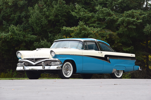 Very few people in this world have owned a 1956 Meteor Crown Victoria, why? Because this particular model is one of the rarest of all Fords ever produced with only 206 units built. In fact, it is believed that there may be fewer than 10 examples left in existence! This particular Crown Victoria has been treated to a body-off-the-frame fresh restoration, completed this year, which included the refinishing and detailing of the undercarriage as well as a new interior and nicely detailed engine bay. During the restoration, virtually all the chrome has been replated or replaced and the stainless moldings have been polished. Fortunately, the car retained all the rare Meteor emblems which are unique to this car and virtually impossible to replace. Many new parts and components were installed on the car including, but not limited to, new master cylinder, brake lines, shocks, stainless steel gas tank & fuel sender unit, exhaust, control arm bushings and idler arm bushings, headliner, windshield, and more. The car is equipped with a 292 cubic inch V8 and automatic transmission, power steering, town & country radio, wire basket wheel covers, continental kit, fender skirts, rear deck antenna and backup lamps. Due to the fact that the restoration has recently been completed, the paint chrome and interior are all in good-to-excellent condition and the most obvious flaws are some minor scratches in the back glass. Documents include an original letter from the Historical Consultant at Ford Motor Company verifying the car’s authenticity as well as owner history. Timeless Fifties styling, a beautiful restoration and super rare . . . it doesn’t get much better than this!