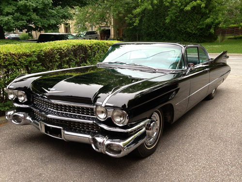 This Coupe DeVille features power windows, dual ashtrays, power seats, GM Wonderbar radio and a factory clock. Hardly any car from the Fabulous Fifties took fins, chrome and opulence to the same level of excess as the 59 Cadillac. This is a collectible that makes as much statement today as it did in 1959.