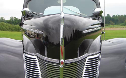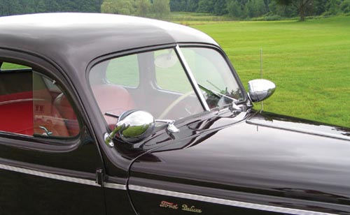 Transmission is a 3 speed manual with rare Columbia overdrive. The deck lid was modified by Cal Custom Metal Shapers who formed 2 parallel feature lines into the lid.