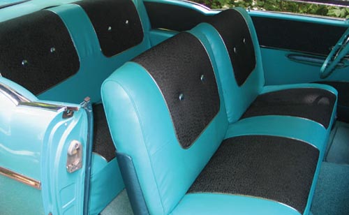This Colorado car has been treated to a frame-off restoration resulting in an outstanding example of one of America’s most desirable automobiles. Options include a 283 cubic inch Power-Pack V8 with 4 barrel carb and dual exhaust, power steering, power brakes, continental kit, bumper guards, fender skirts, spinner caps, www tires, tinted glass, shaded windshield and two-tone paint. It has been professionally refinished in Tropical Turquoise with matching interior.