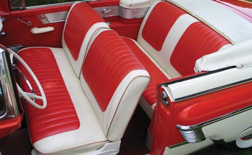 Solid-bodied North Carolina car equipped with 312 cubic inch V8, automatic trans., new dual exhaust with correct “thru-the-bumper” tips, rebuilt Town & Country radio, power steering, power brakes, power top, power seat, continental kit, new convertible top, fog lights, spot lights, fender skirts, www radial tires, 4-bar hubcaps. Car runs & drives excellent, just completed a trouble-free 1000 mile road trip.