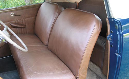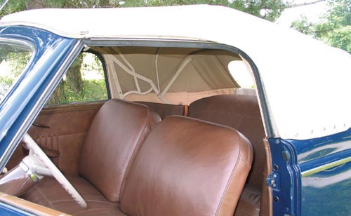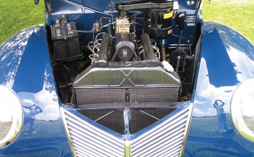1939 was the first model year for Mercury and it was an instant hit with the introduction of the 239 cubic inch “100” V8. That engine, along with a 3.54:1 rear axle ratio resulted in a car that was able to cruise comfortably down the highway and still get pretty good fuel mileage. This car has been restored to V8 concourse specs and features a LeBaron-Bonney leather interior, cloth top, working radio and heater.