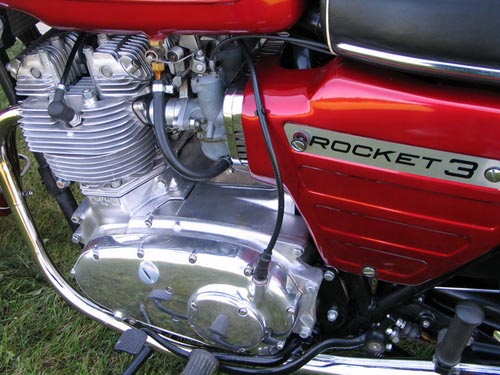 The 1969 BSA Rocket 3 was the first true modern era superbike and was quite a sensation when first launched. A highly sought after bike this Rocket underwent an extensive restoration (only 61 miles since) with NOS parts while still maintaining its original paint. Still outfitted with its very unique exhaust. A very rare very collectible BSA.