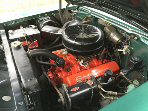 Showing all original equipment. Paint, chrome and interior are excellent. 283 4 barrel motor, 3 Speed standard transmission with overdrive, which is very rare and power steering. This car has had a complete frame off restoration.
