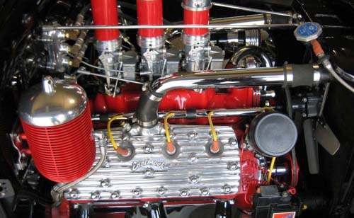 This rod was built on the west coast over 50 years ago when and where Hot Rodding originated. This is an all-steel example, not something built out of plastic or on-line ordered, true craftsmanship. It has since been treated to a high dollar complete restoration leaving most original components as they were. With an early Flat Head Ford V8 an Offenhauser intake with three 97’s for breathing, this roadster is loaded with speed equipment, dressed up chrome and stainless throughout. A number of interesting and unique additions are the ‘Wood’ style front head lights, a Duesenberg reverse wind tach, an Auburn dash, a Stanley Steamer wood wheel and many unique options throughout. It has an excellent show quality paint finish in deep burgundy metallic and tasteful flame striping on the removable engine side covers and hood. The interior upholstery is extremely well done in red leather as are the door panels. A highly restored trunk area. This is an exceptional and unique Rod sure to grab the attention of all enthusiasts.