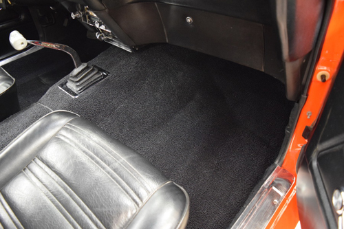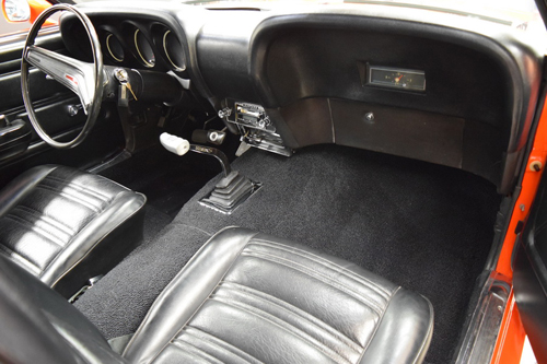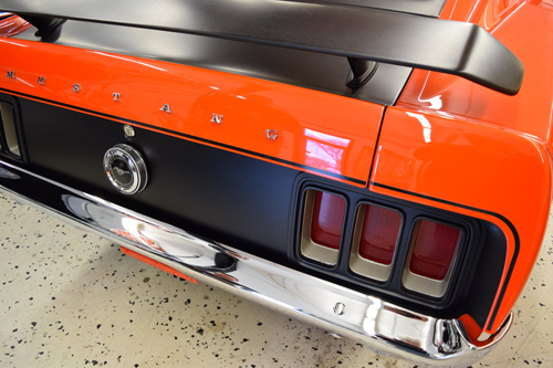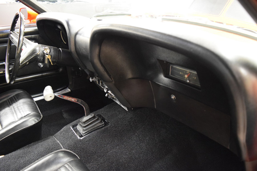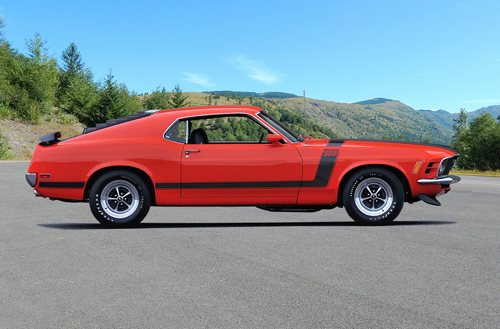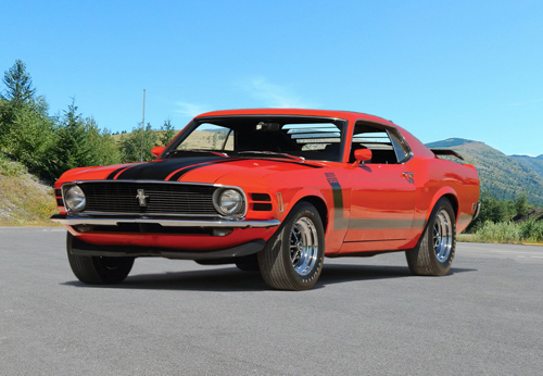 Rare Calypso Coral paint with a great looking black interior. The Boss 302 Mustang showcases the V8 with big valve heads, high rev cam, solid lifters and close ratio Toploader 4 Speed with 3.91 Traction-lok 9″ rear. Has factory 8,000 rpm tach, power steering and disc brakes, rear window slats, rear spoiler, correct 15″ Goodyear Polyglas GT F60-15 tires and tinted glass, Car was in Alabama 30+ years and is a recent arrival in Canada.