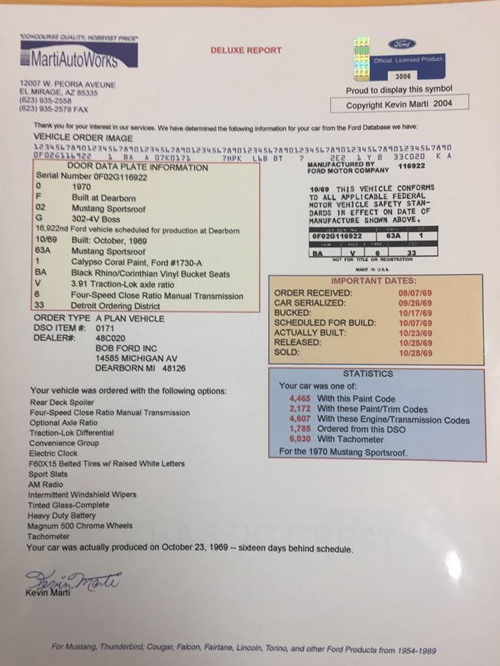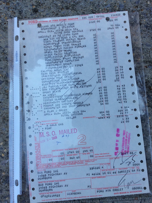 Rare Calypso Coral paint with a great looking black interior. Colour code “1” on the trim tag confirms that this great example was refinished on the assembly line in Calypso Coral. A drivetrain inspired by and designed for road racing, the Boss 302 Mustang showcases the amazing 302 V8 with big valve heads, high rev camshaft with solid lifters along with a close ratio Toploader 4-Speed and a 3.91 Traction-lok 9” rear end. Also comes with factory 8,000 rpm tach, power steering, power disc brakes, rear window louvers, rear deck spoiler, 15” magnum 500 wheels, correct 15” Goodyear Polyglas GT F60-15 tires and tinted glass. This car has been in Alabama for 30+ years and is a recent arrival in Canada. Deluxe Marti Report and Original Ford Shipping Invoice included with the car.