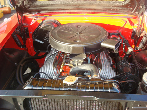 A body-off restoration 348 Tri-Power optioned with p/steering, p/brakes, automatic transmission, door handle nail guards, fender skirts, dual rear deck antennae, continental kit, rear exhaust ports, windshield washers, spinner hubcaps, tissue dispenser, clock, rear speaker with fader switch and 348 V8 with triple carbs.