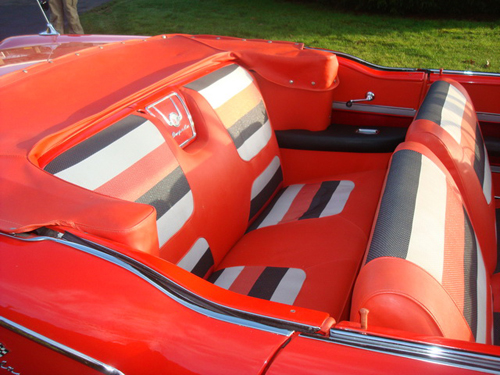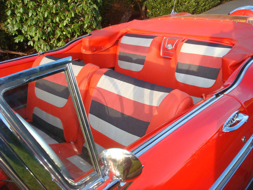 A stunning example that was the recipient of a body-off restoration and nicely optioned including power steering, power brakes, automatic transmission, door handle nail guards, fender skirts, dual rear deck antennae, continental kit, rear exhaust ports, windshield washers, spinner hubcaps, tissue dispenser, clock, rear speaker with fader switch and of course the mighty 348 cubic inch V8 with triple carbs.