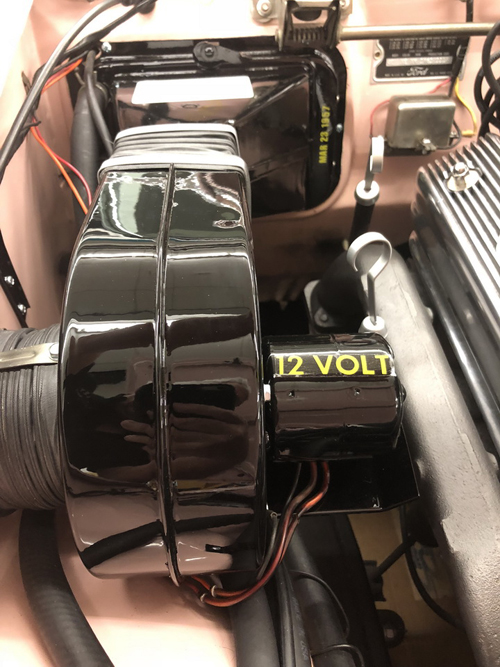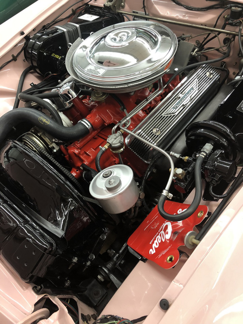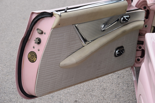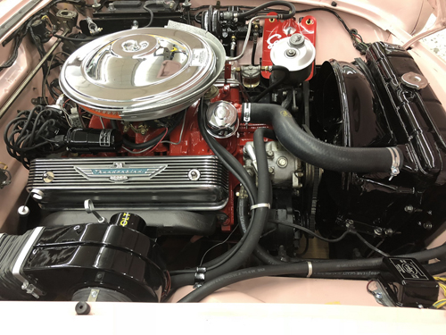 Former California car finished in its original Dusk Rose powered by a smooth running 312 V8 with automatic. The car accelerates smoothly, brakes easily and is simply a joy to drive. Features air conditioning, power seat, power windows, Town and Country radio (converted to FM), original owners manual and a new top. It also has beautiful Kelsey-Hayes wire wheels with wide whitewall tires, fender skirts, power brakes and power steering.