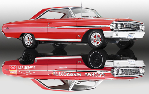 427 c.i. and 4-Speed transmission. To date, there are under 25,000 original miles on this car !! CCP Auctions is proud to be able to offer the iconic Galaxie drag car of Toronto’s George Massicotte. George ordered his Galaxie specifically to go fast and was not disappointed. This car captured the Canadian National B/Stock record in 1965, driven by legendary Canadian drag champion, Barrie Poole. The car finished 3rd in a field of 38 B/Stock cars at the 1965 NHRA Indy Nationals. Massicotte and Poole were awarded ‘Most Consistent Winning Ford of the 1965 season’ by Elgin Ford’s Performance Division. Although Barrie stopped driving the Galaxie so that he could go on to fame as part of the Border Bandits team, George continued to race the car with winning results.