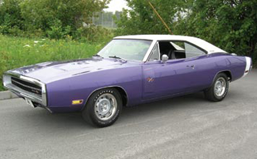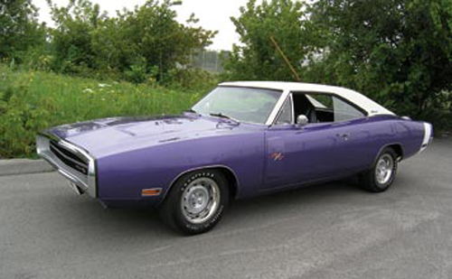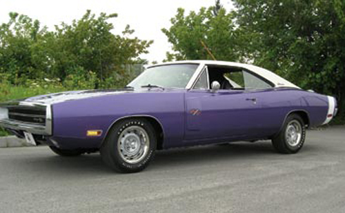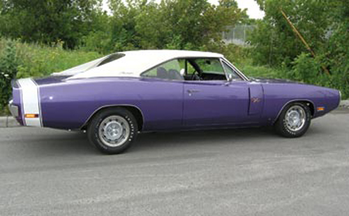 440-6 pack, four-speed manual transmission. Numbers matching, V-code, broadcast sheet and fender tag. Plum Crazy purple with rare hounds tooth interior. Original sheet metal, and a fresh rotisserie restoration to concours standards.
