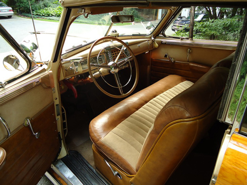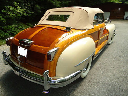 An especially unusual T&C bought new by the Newfoundland Tourist Board then sold to California where it remained until it was retrieved and brought back to Canada 6 months ago. Rebuilt straight-eight motor, fluid-drive transmission, leather and cloth interior, dual heaters, power top, radio, wide whites and dual spotlights. The rot free ash and mahogany wood is handsomely varnished and neatly finger jointed. A highly collectible classic car.