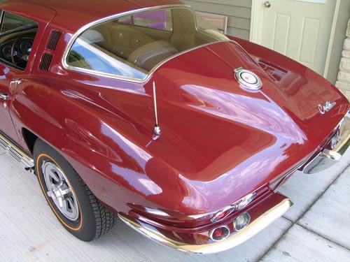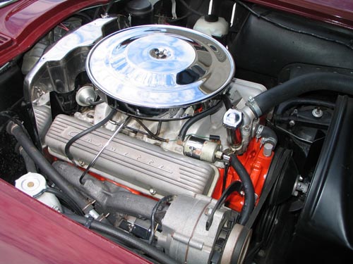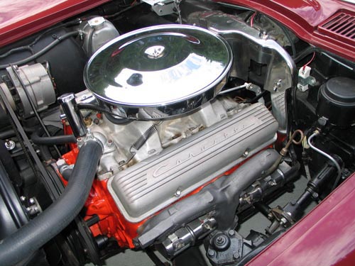This 1965 Corvette Stingray sports the L76 327 ci, 365-hp V-8 engine with a four-barrel carburetor.This three owner vehicle has had a complete body-off restoration with factory correct components and is finished in Milano Maroon. Standard equipment for this year includes a tachometer, heater, defroster, safety belts, four-wheel disc brakes, extensive instrumentation, plus many other features. The side mount pipes were an extra cost option. Leather seats accentuate the luxury that accompanies very quick quarter-mile and 0-60 times. This Corvette has been well cared-for and it has never been used in rain or snow.