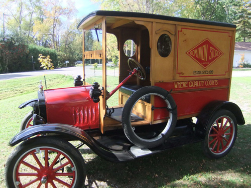 Authentic restoration of a period correct delivery wagon. Used by Dominion Stores for marketing. Excellent engine, transmission, first year for electric starter. Ready for touring, historical significance, or change lettering for a new business.