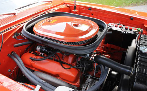 While the Dodge Super Bee was a sales success among Mopar enthusiasts, die-hard performance fans, they lobbied for another engine package to round out the car, which was initially offered with the 335 horsepower, 383 cubic inch engine, or the top-of-the-line 426 Hemi. In response, the A12 package was introduced after the launch of the 1969 models, resulting in the 1969 ½ Super Bee. A $468 option over the 383-equipped Super Bee, the A12 package included a 440 cubic inch V8 engine topped with a special Edelbrock aluminum intake manifold mounting three Holley 2-barrel carburetors. In addition, the option provided a heavy-duty suspension, as well as heavy-duty brakes, transmission and rear axle. The flat black fiberglass lift-off hood was fastened by four NASCAR-style hold-down pins, and was topped with a massive and menacing air scoop. A set of heavy-duty 15″ police car wheels, finished in black, rounded out the “no nonsense” look of the car. A total of 420 coupes were produced, and only 267 were equipped with a four-speed manual transmission. The A12-equipped Super Bee was rated at an advertised 390 horsepower, and it is widely regarded as one the quickest and fastest muscle cars of the era.