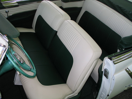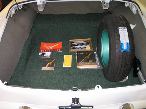 This rare Olds from Florida features automatic transmission, power steering, power brakes, power windows, power top, clock in dash, Deluxe am radio, windshield wipers, stainless gas door guard and dual exterior mirrors. The Olds “spinner” wheelcovers with wide whitewall tires have the rear fender skirts. With a clean undercarriage and detailed engine bay, this is one stunning convertible.