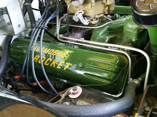 This 1953 Oldsmobile 98 convertible was the top of the Olds line in its day and it still looks as impressive today. The dazzling white paint is offset by the two tone white and green interior. Underhood is the Rocket V8 made so famous by Oldsmobile for its overhead valves and reliable power. This rare Olds, up from Florida, also features automatic transmission, power steering, power brakes, power windows, power top, clock in dash, Deluxe am radio, windshield wipers, stainless gas door guard and dual exterior mirrors. The Olds “spinner” wheelcovers with wide whitewall tires have the rear fender skirts. With a clean undercarriage and detailed engine bay, this is one stunning convertible. Rarely seen and even more seldom for sale, this 53 Olds convertible is one of the finest anywhere.