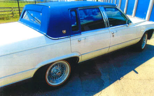 Stunningly beautiful automobile. In showroom condition, 5.0 litre V8 fuel injected. 43,725 kms, chrome steel wire wheels, brand new Vogue goldline tires, new battery, excellent white paint, blue cloth roof, gorgeous white leather interior, gold trim package. This is a top quality showroom fresh full size Cadillac which shows virtually no wear in any area and it is a time capsule of one of the last full size Cadillacs in this body style.