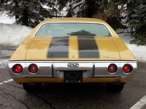 454 / 350 + Horsepower LS5 Big-Block equipped with 465 lbs.ft.(app) torque! Automatic 400-Turbo transmission. 12-Bolt rear end with 3:30 gears. PST performance poly-graphite super front end kit. PST ground-zero coil springs. KYB shock’s. 1 1/4 front and 1 rear sway bars. PST poly graphite upper and lower trailing arm kit. 454 Engine bored .30 over. 750cfm Holly carb. Edelbrock performer cam. High performance oval-port head’s with 3/8 inch rods. 3-Inch Amuminum Magnaflow exhaust. Restoration performed from ground up including a LASER-STRAIGHT body! SS components original to model. SS Black painted racing stipes. Original 53 paint color in Placer gold metallic. Bucket seating. Floor console. Tachometer and sport guages. Original 721 interior in saddle tan. Original Canadian-delivery Sold new and shipped august 31 / 1970 to Sculthorpe Motors, Port Hope Ontario. Chrome is excellent. Incredible Power, torque and the sound of this Big-Block get’s your heart pounding. An extreme amount of $$ spent to produce an exciting Big-Block Muscle-car. Original LS5 Chevelle’s today can trade anywhere upwards of $60,000+ dollars. Fully Certified* and ready to enjoy
