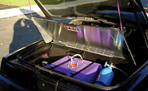 Pro-Street, ’82 Trans Am with ’92 front clip and interior, 6 point cage, 355 small block chev, newly rebuilt TH350 Trans with new B&M 3500 stall converter. Has narrowed Ford 9 inch rear end with 4:55 Richmond gears and Strange Engineering 35 spline axles driving 18.5″ x 31″ Mickey Thompson’s on Weld Pro Star Racing wheels. The full frame extension and cage is by LJ Chassis’s and has a Bear’s rear clip, four link and panhard bar. The car features all steel construction including the wheel tubs, coil over rear shocks and has been lowered 4 inches. The Chev 350 was rebuilt by Feden’s Racing and is bored .030″ over making 355 cubic inch. With 10.5:1 compression, 2.02″ heads, it makes about 375 hp on pump gas. Car is totally street legal. The Nitrous bottle is not connected. Has a new Stainless exhaust & more !!!