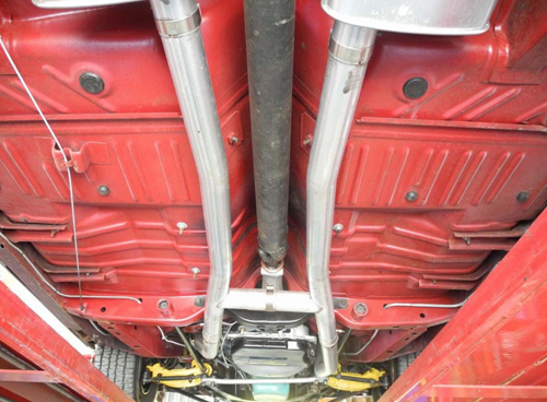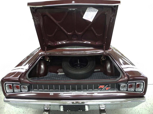 Sure to turn heads, this RT is equipped with a date coded 440 V8 engine with dual exhaust, console shifted automatic and 3:23 sure grip 8 ¾” differential. Finished in rare burgundy metallic with white horizontal trunk stripes and matching white vinyl bucket seat upholstery. Optioned with power steering, drivers side remote mirror, factory AM radio and 14” magnum road wheels. This R/T is as clean underneath as on top. Runs and dr