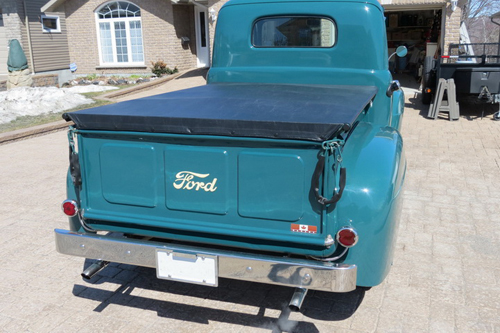 Truck is from Texas, has never seen ice or snow; always inside since 2011 except for shows. Visually very appealing – original windshield still has a sticker on it from a State Park 1962. First “truck” that was built on a chassis built just for it.