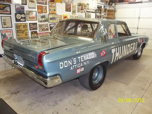 Thunder II is a 1965 Dodge Coronet A-990 Hemi Charger. It is number 48 of 101 Dodge’s built for drag racing only. One of few painted DD-1 medium blue iridescent. Ordered by Jim Almeter, Don Townsend and Neil Marzolf of Attica N.Y. Ordered through sub dealer Greco Dodge in Darien