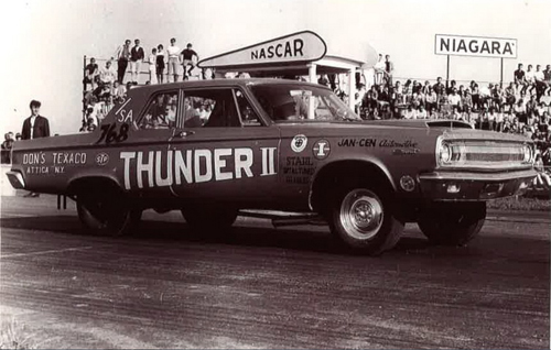 The car was used for drag racing in N.Y State and Pennsylvania and Ontario, Canada. It was also raced at the 1965 U.S. Nationals. In spring of 1967 car was sold to Jerry Vanek in Toronto, Ontario and was painted red and run as the 1/4 Mile Hustler.