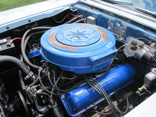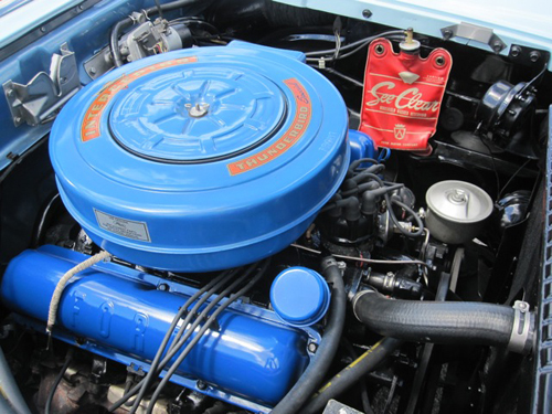 As stated the car was not taken off the frame as it was not required, another great indicator of how solid of an example it is. Refinished in its factory correct colours, Surf blue over Wedgewood blue, likely one of the most favorable color combos available in 1959. The finish is exceptional, virtually flawless with great coverage and smooth as glass. All chrome and stainless is combination of replated original and triple plated to show quality, all stainless was buffed and polished all brite work shows exceptional. The interior is near flawless with a 100% correct replaced ‘ABC’ interior, the authorities in replacement Ford interiors. Upon replacement the owner placed clear seat covers to protect the upholstery. All interior chrome and stainless trim is intact and shows well. Equipped with factory original 352 cid overhead valve V8 , this being the ‘interceptor’ ‘ Thunderbird Special’ engine. The engine was taken apart and inspected during 2006 restoration. The engine detail is not only 100% correct and authentic it is also impeccable, truly. The car starts runs and drives excellent, never runs hot, and arrow straight down the road under power load as well as hard braking.A true treat to drive.