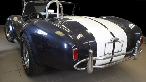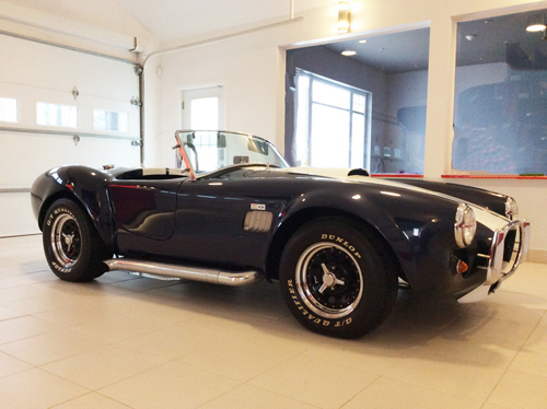 This AC Cobra replica is powered by a 302ci smallblock Ford V8 with a 3 speed automatic transmission. A nice driver that is easy to work on and maintain, it has had a recent service and runs great. Read for fun summer drive! Low km – 2500. Custom built Cobra by Miami Carriage, it is titled as a 1964 with AC64 in the vehicle identification number to lend authenticity. It has a low 2500 kms on the odometer and is ready for fun summer driving.