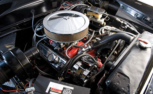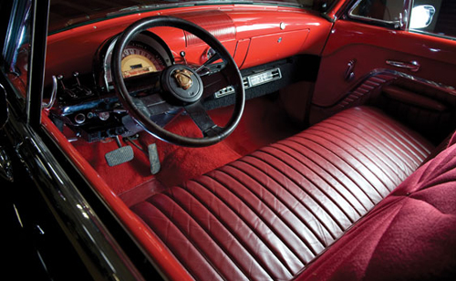 This outstanding example displays a “Phantom of the Opera” motif, and features a smooth black finish that highlights flawless bodywork, complemented by a custom convertible top with blind rear quarters, reminiscent of Ford’s formal Victoria models of the 1930s. Other touches include excellent brightwork, tasteful pin stripe accents, “tri-bar” headlamps, a de-chromed and louvered hood, late-model Lincoln wire wheel covers, chrome lakes pipes, a “Continental” spare tire kit, and chromed dual exhaust outlets. Of course, the Mercury also features shaved door handles, and a “cowboy rake”, accenting its clean and distinctive bodylines. The interior is trimmed in red upholstery and carpeting, and equipped with a GM tilt steering column, a late-model Camaro steering wheel, and aftermarket air conditioning. Mechanically, a small-block Chevrolet V8 engine provides the power, mated to a GM Turbo Hydra-Matic automatic transmission. This 1953 Mercury Monterey Custom convertible is the epitome of a custom 1950s car, with subtle modern upgrades. Superb for show or go, it will be a great addition to any enthusiast’s garage.