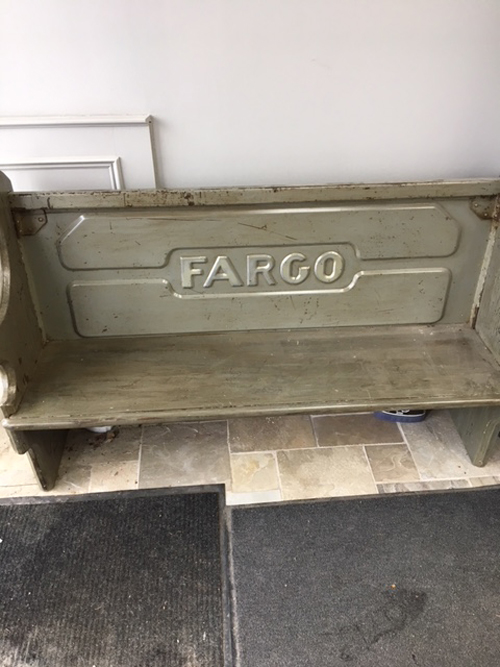 ANTIQUE WOOD CHURCH PEW WITH FARGO TAILGATE BACK Unknown